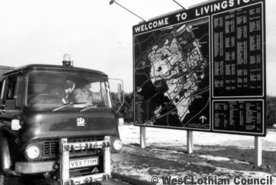 This photograph shows one of the many maps of Livingston that were put up in order to help drivers navigate around the town. These maps have since been updated with new areas of development starting.